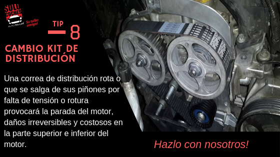Una correa de distribución rota o que se salga de sus piñones por falta de tensión o rotura provocará la parada del motor, daños irreversibles y costosos en la parte superior e inferior del motor.